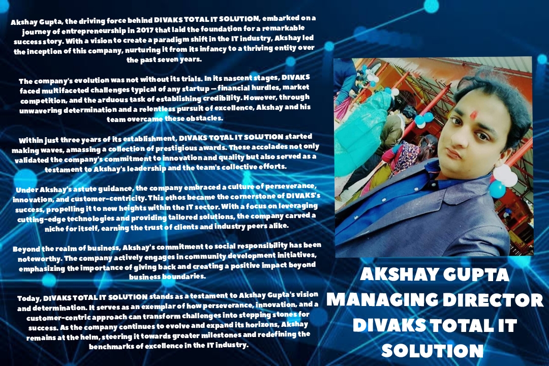 We are talking about Mr. Akshay Gupta, the proud resident of Asansol, West Bengal, and the Managing Director of DIVAKS TOTAL IT SOLUTION — an award-winning IT company known for its excellence and innovation.