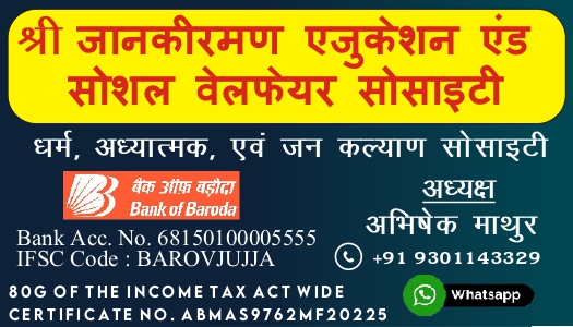 पद: अध्यक्ष – श्री जानकी रमन एजुकेशन एंड सोशल वेलफेयर सोसाइटी, धर्म आध्यात्मिक एवं जनकल्याण समिति